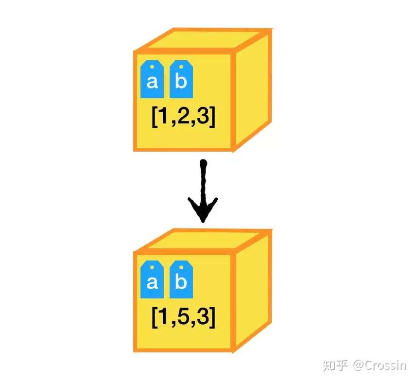 - 后者,变量不存在实体,它仅仅是一个标签,一旦赋值就被设置到另一个物体上,不变的是那些物体。