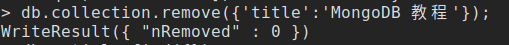 # 删除成功会返回 WriteResult({ "nRemoved" : 0 })