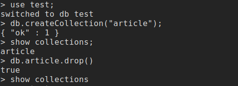 - 删除集合,使用collection对象的drop()方法来删除集合,例如删除一个article集合