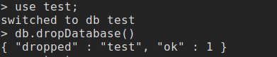 # 删除成功会返回 { "dropped" : "test", "ok" : 1 }