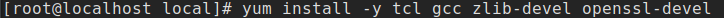yum install -y gcc tcl zlib-devel openssl-devel
