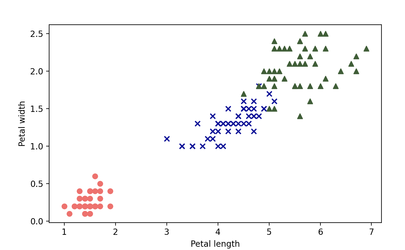 这里,千万不要直接拿y_pred和y进行比较,我们之前说过,聚类算法并不知道数据对应的标签,它只是根据特征将数据划分为不同的类别,这里输出的0、1、2 并不直接对应到山鸢尾、多彩鸢尾和为吉尼亚鸢尾。我们可以用可视化的方式来看看预测的结果,代码如下所示: