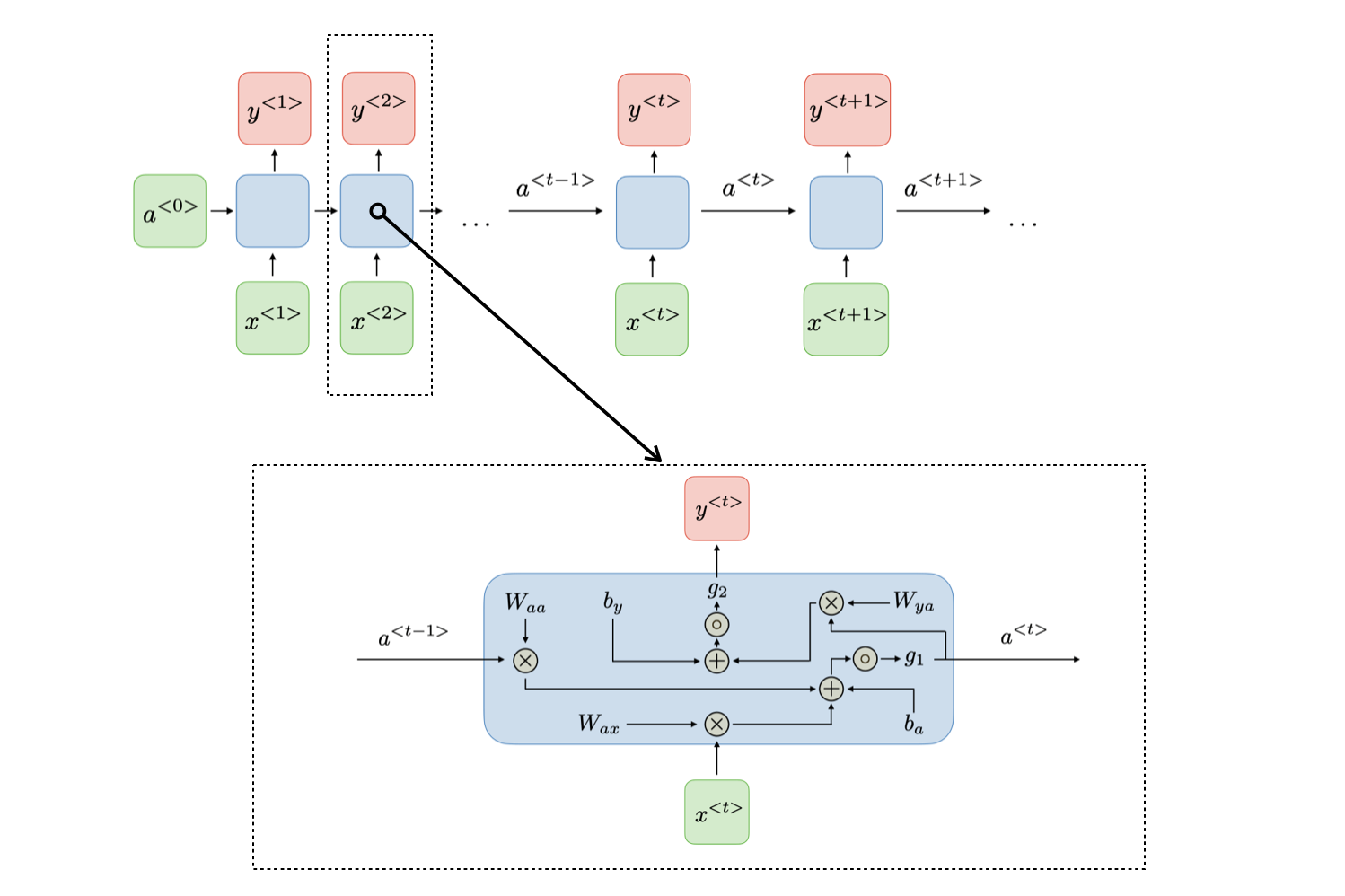当然,NPLM 模型也存在无法有效捕捉长期依赖关系的问题,为此,研究者又提出了 RNN(循环神经网络)模型。RNN 是一种能够处理序列数据的神经网络,它的关键特性是能够将前一时刻的隐藏状态传递到下一时刻,从而在时间维度上建立联系。RNN 在训练时能够捕捉文本中的时序依赖关系,并且不局限于固定长度的上下文窗口。RNN 在每个时间步依赖于当前输入和上一时刻的隐藏状态,能够有效捕捉序列数据中的时间依赖性,通过反向传播算法更新权重,如下图所示。